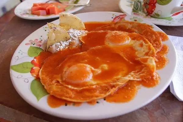 在墨西哥,他吃了很多“奇怪”的东西。毛茸茸的水果、外表像油条内里却软糯的小吃、腌仙人掌、裹了辣椒粉的糖渍梅子……有次他被一个墨西哥小哥拦住,让他到他们餐馆吃饭。墨西哥小哥推荐了一道叫做huevos rancheros的菜。