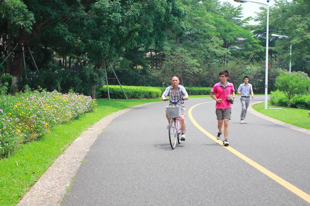 小神经陪爸爸在公园骑车