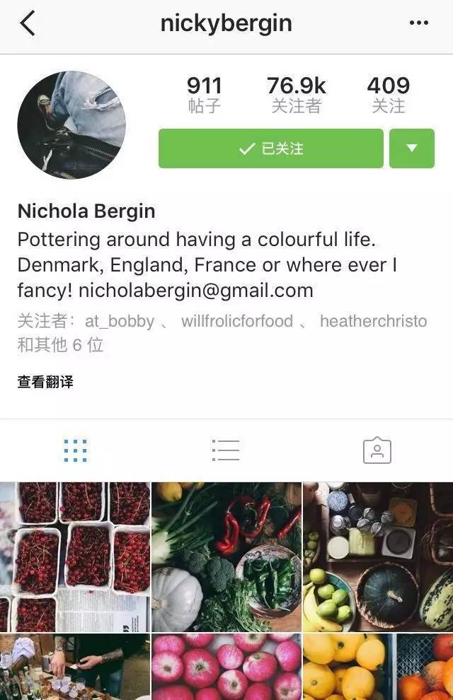 Nichola Bergin是有机农夫市集爱好者,在她的ins里除了农夫市集里各种新鲜的蔬果,就是她的日常简单又健康的烹饪,用的几乎都是市集里买的蔬果。她闲晃的地方主要是法国、英国和丹麦。虽然Nichola的ins没有什么干货或者食谱,但从她的镜头下可以看到各国的有机农夫市集,看到新鲜可口的蔬果就会莫名开心起来,大概这就是她会有这么多粉丝的原因吧。