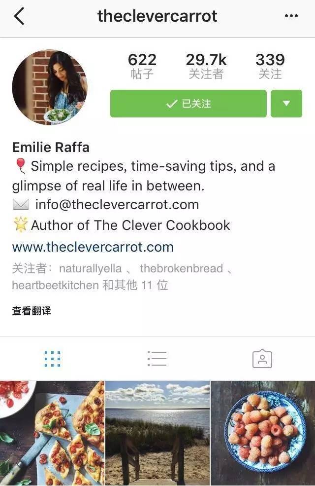 Emilie的食谱特别简单,还是减压型的食谱。按着她的食谱在家简简单单就能出一份可口的美食,压力自然减少了许多。 theclevercarrot是她博客的名字,在她的博客和ins上不仅可以学到快手美味的菜,她还会分享在超市购物的点子等等。她把她的有机生活经验都分享了出来,跟着她能学到许多实用的知识。