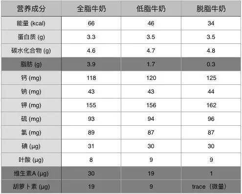 1脱脂/低脂牛奶,究竟有多少营养?