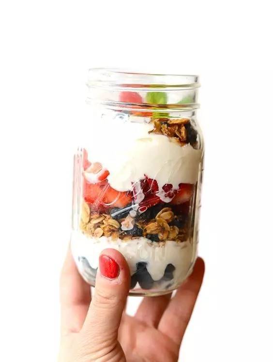 梦厂友情提醒:如果是在减肥期间食用,这个配方中就不要再加多余的糖或蜂蜜、枫糖浆之类的甜味剂啦~脱脂/低脂酸奶+天然水果的搭配,本身是非常棒的简单碳水化合物+蛋白质的组合,很适合运动中、运动后食用。当然,它也可以当早餐,加一点谷物麦片,还能增加营养和饱腹感。