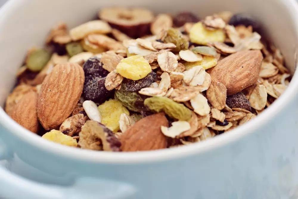 有些即食麦片,会加入葡萄干、蔓越莓、杏仁、核桃等做成果仁麦片。这样既能品到麦片的清香,还能尝到果干的酸甜和坚果的香醇。吃的时候边咀嚼边回味,幸福感爆表。