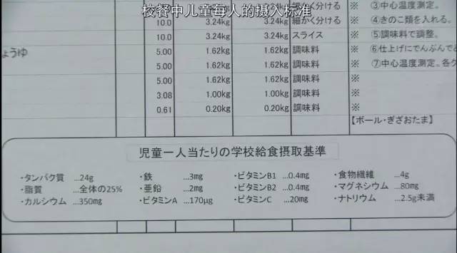 擅自减少食材,也是做校餐严令禁止的,政府规定小学生校餐必须具备12种营养元素,包含:蛋白质、脂肪、钙、铁、亚铅、维他命A、维他命B1、维他命B2、维他命C、食物纤维、钠和镁。