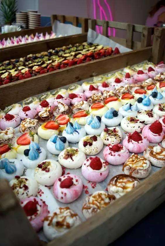 伦敦有俩姑娘太喜欢马林糖了,于是研发出一种名叫马林之吻(Meringue Kisses)的五彩缤纷的马林小甜点,可爱至极风靡整个大不列颠。下图中棕色是巧克力味儿,白色是椰子味儿,蓝色是金汤力味儿,绿色是开心果玫瑰味儿,黄色是柠檬草姜味儿,橙色是百香果味儿,粉色是树莓味儿,粉绿是西瓜味儿。这么一筐也就140胖子,差不多1200软妹币恶已_(:_)∠)_。