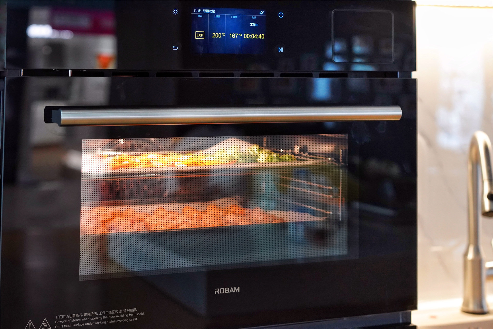 前面有说,这台烤蒸一体机真正做到了蒸烤相结合,主要体现的一大特点就是在烤功能下,我们可以随时根据自己的需求来为食物增加蒸汽。