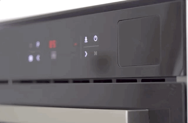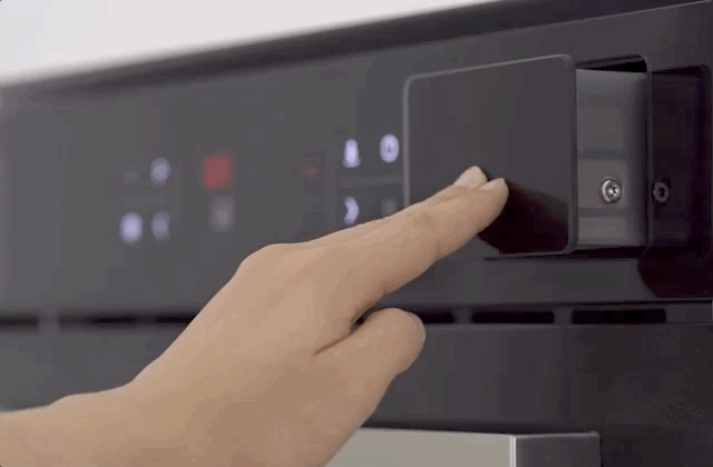 整体外观可以说满足颜值党的审美喜好,采用光滑的黑色玻璃面板,简洁设计的触控屏,拉丝金属的宽把手符合人体工程学,前置的散热装备嵌入无压力,放置在家中的整体橱柜中简洁美观,嵌入式产品还很节省台面空间。