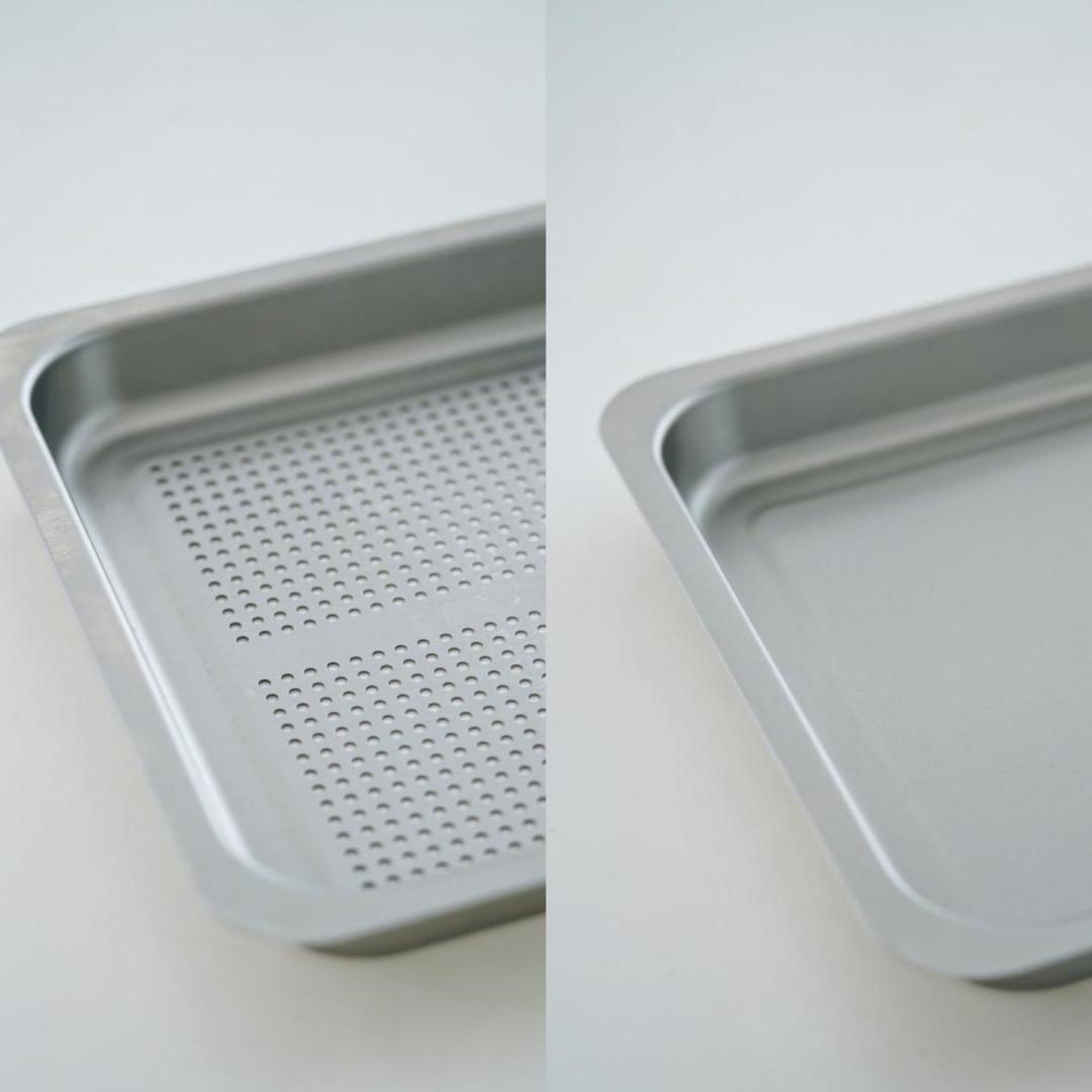 S271X蒸箱配备了有孔和无孔两种蒸盘,均为304不锈钢,可与食物直接接触,可供实际需求选择,用蒸箱蒸制面点、薯类、米饭等蒸箱上下都需要大量蒸汽的食材,可选择有孔蒸盘,若是其他蔬菜肉类可以选择无孔蒸盘,无孔蒸盘也可铺满海鲜,直接蒸制,省去多余碗碟。