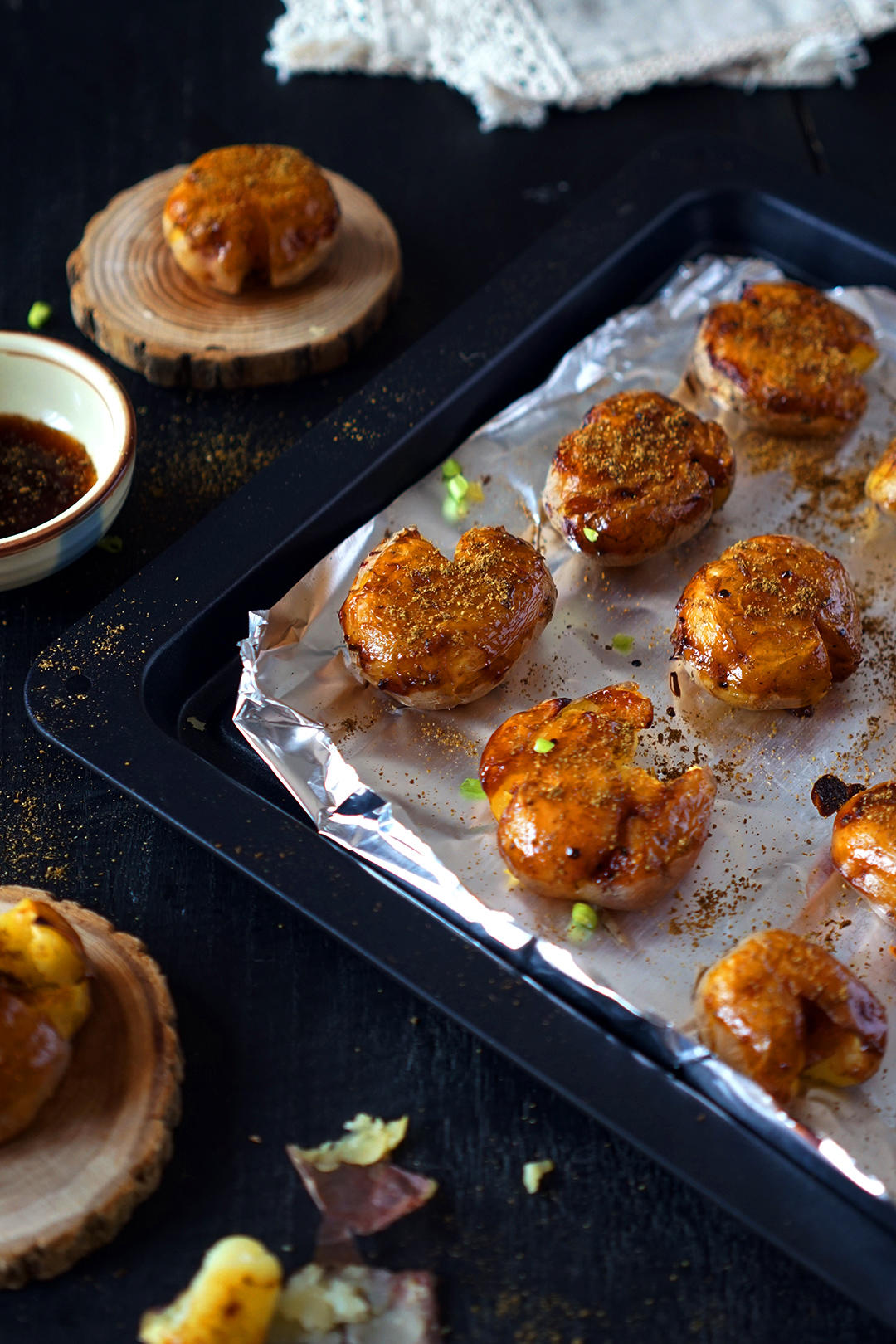 拉出来刷烧烤汁,撒上孜然粉。再五分钟。