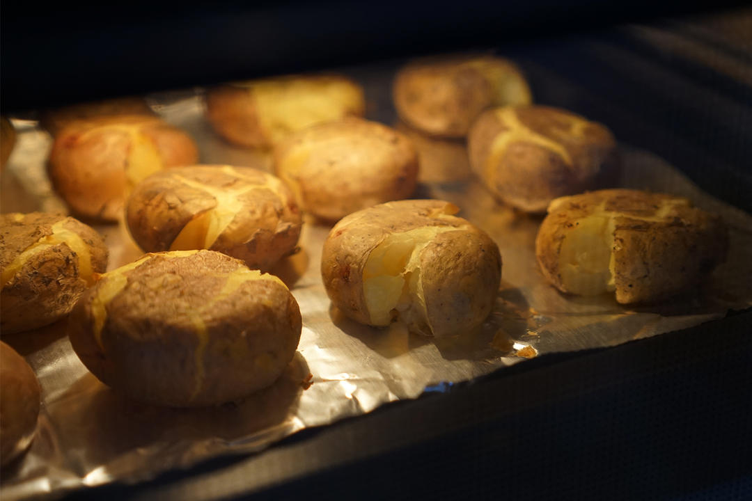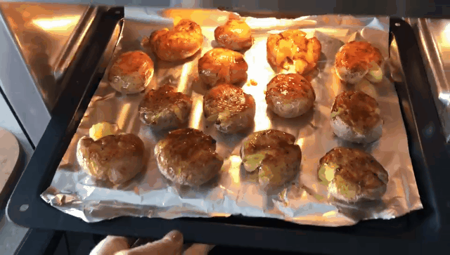 除了让人特别省心的自动菜单,自由发挥一下蒸烤一体机的双重功能也是很不错的,我在减脂期的时候常用土豆碳水代替米面碳水,通常都是蒸熟就吃了,有了蒸烤一体机以后,就可以先使用营养纯蒸,然后压扁小土豆,刷上料汁,再使用烤模式给土豆染上烧烤的香气,比纯蒸熟的小土豆好吃太多啦~
