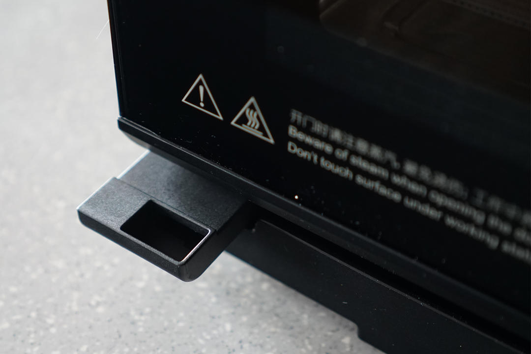 蒸汽出口,面板上有很显眼的防烫提醒,很是贴心~