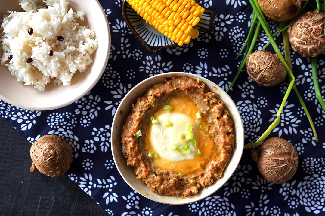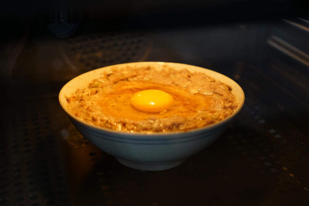 大家也可以随意加点花样,肉饼蒸好之后,窝一个鸡蛋,再蒸3-4分钟,营养的溏心蛋也成了~不喜欢溏心就提前把鸡蛋加进去,蒸个6-7分钟~