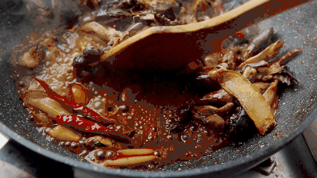 8| 炖煮结束后开盖,开中大火收汁,将汤汁收浓,这个过程可以适当加盐调味,一点点盐就足够。最后汤汁收浓变得粘稠,在乐扣乐扣不粘炒锅里也翻动自如,完全不用担心糊锅的问题。