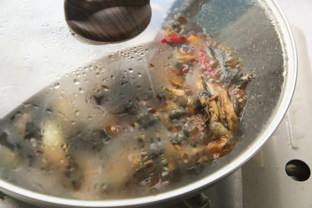 7| 再加入鲍鱼继续小火盖上锅盖焖煮10分钟,这样鸡肉更入味,鲍鱼也不会煮过头而口感变老。