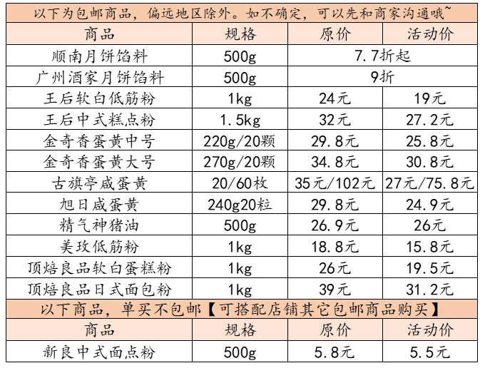 临近月饼节,馅料的供货越发紧张紧张紧张,但我们又为大家争取到了顺南月饼馅料、广州酒家月饼馅料的优惠,节前最后一波,有需要的小伙伴一定不要错过!