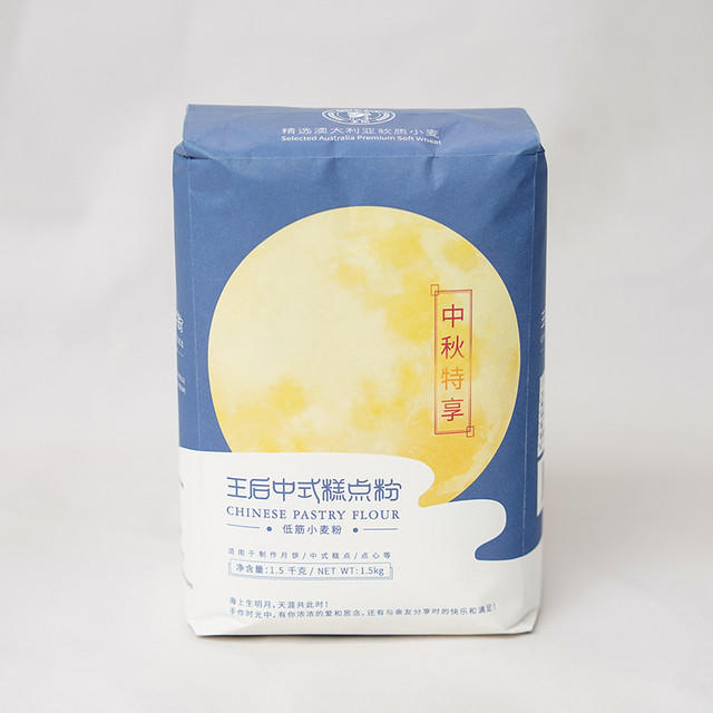 王后中式糕点粉无任何添加,粉质洁白,吸水性极佳,柔软细腻,既能制作层次分明、口感酥松的苏式月饼饼皮,也能制作口感柔滑、不粘不腻的广式月饼饼皮,是家庭制作中式糕点的上乘原料。