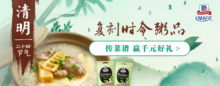 即日起-4月25日,来下厨房参加#味好美|复刻时令古早粥品 寻味节气专属香料#活动,上传你的节气美食,即有机会获得千元鲜炖锅大奖。