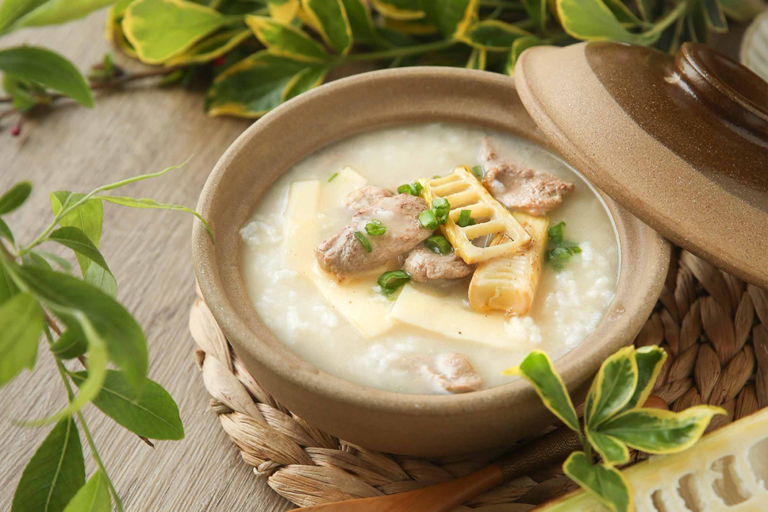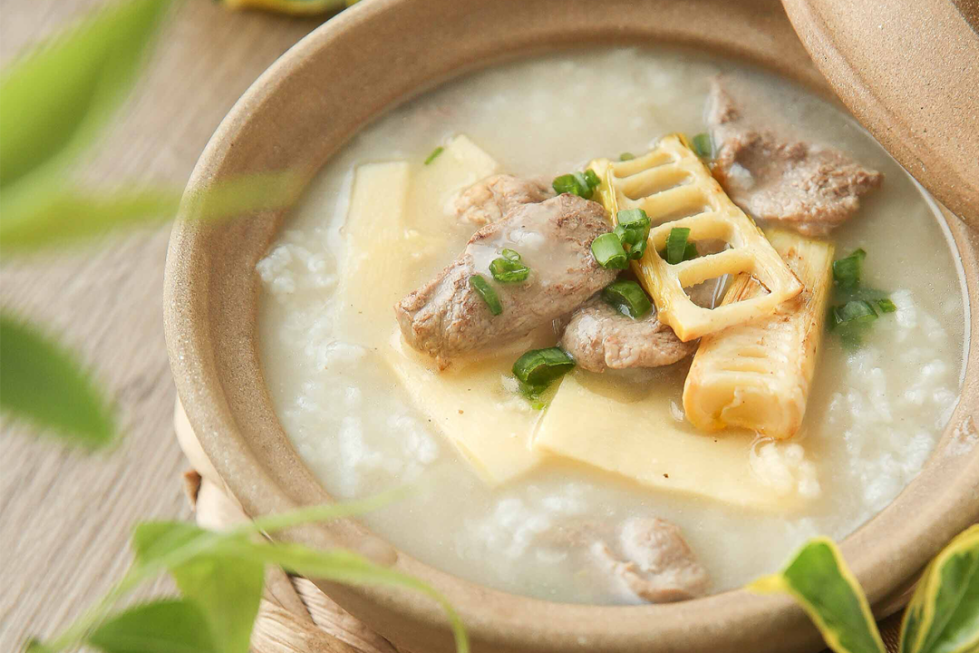 节气食单鸭肉味道鲜美,是很多人都喜欢的养生佳品,《红楼梦》中贾母尤为钟爱鸭肉熬制的粥。选用鸭胸肉和春笋制作一碗「金笋鲜煮嫩鸭粥」,鸭肉细嫩软滑,春笋鲜脆清香。配上煎到金黄的新鲜春笋嫩尖,在视觉上就十分勾人食欲。