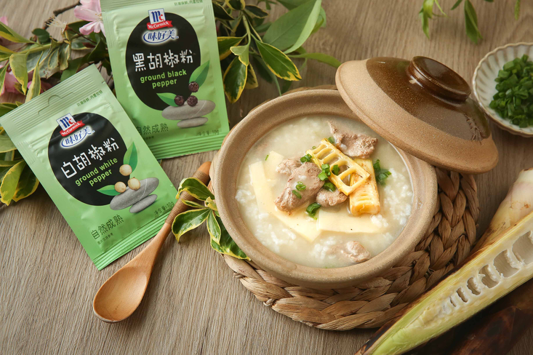 今天这道鸭粥里用到的黑白胡椒正来自味好美。小小一袋调味料,来头可不小。味好美的白胡椒来自高品质胡椒产区海南,只选用5年以上树龄的胡椒树,辛香味格外浓郁。坚持人工采摘,保留胡椒的原始香气,再经过阳光自然晾晒,最终成就胡椒辣而不烈的独特风味,也正是菜肴里最不能缺少的那一味。