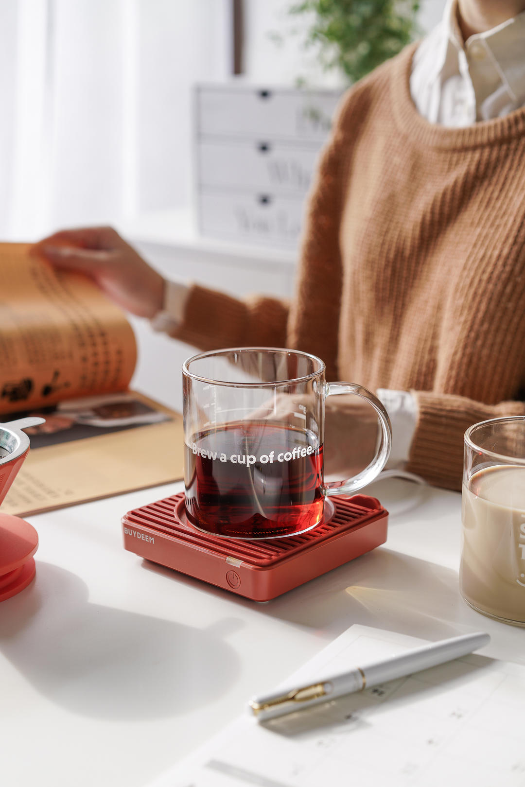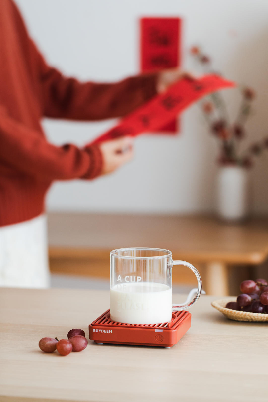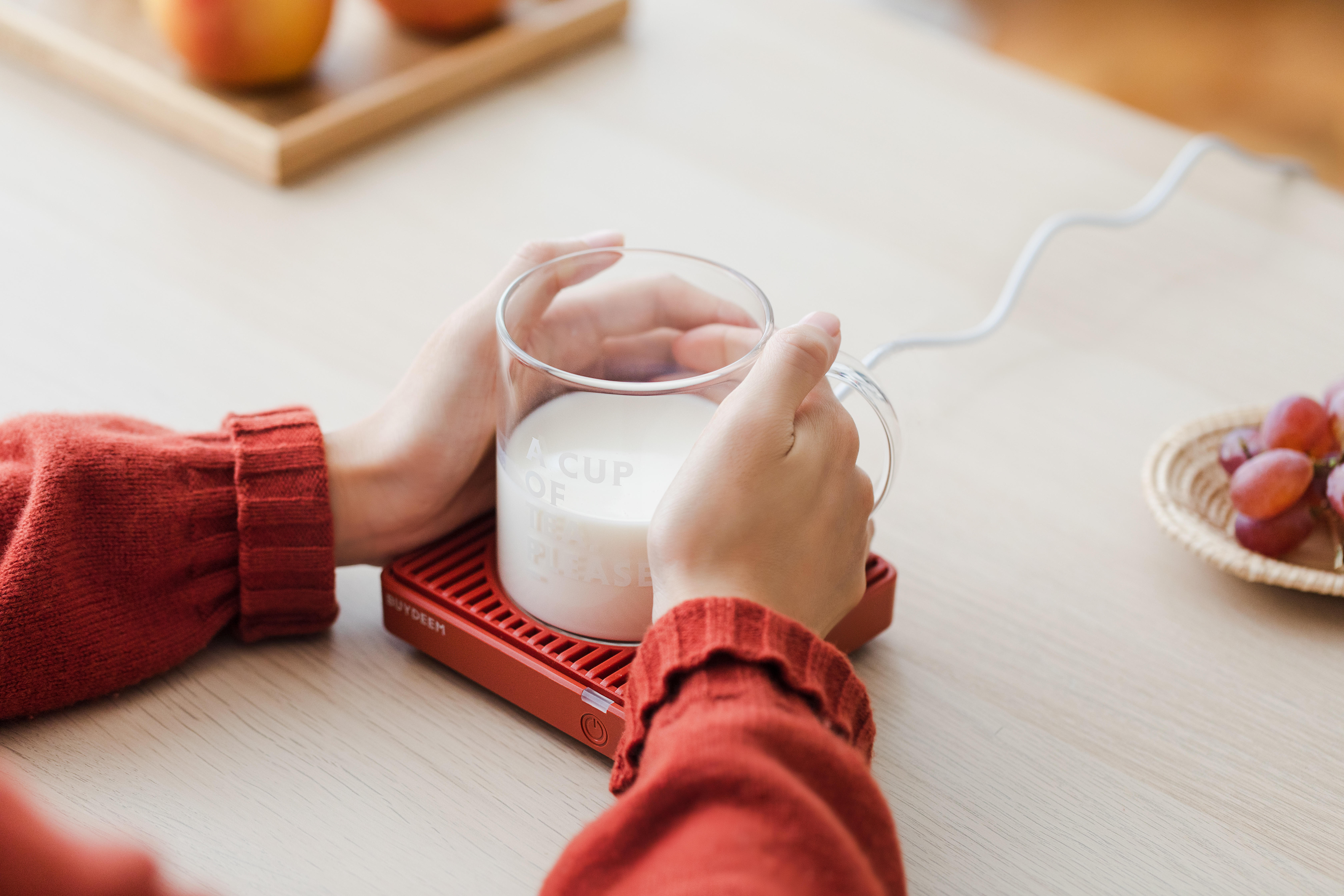 匆忙的早餐想喝一口热牛奶,只需要把它放在小暖垫上,洗漱好牛奶也热好了,真的很幸福!
