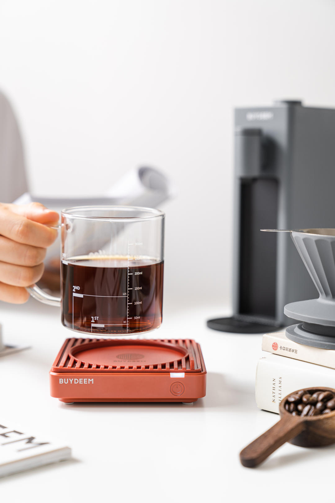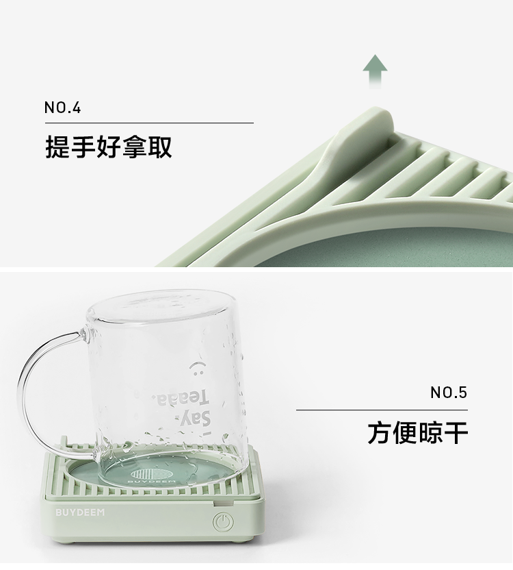 操作也很省心,使用的过程中完全没有异味,而且硅胶垫的设计很实用,不仅可以固定住杯子让它稳稳的,还起到了隔热作用,碰到也不会烫手。