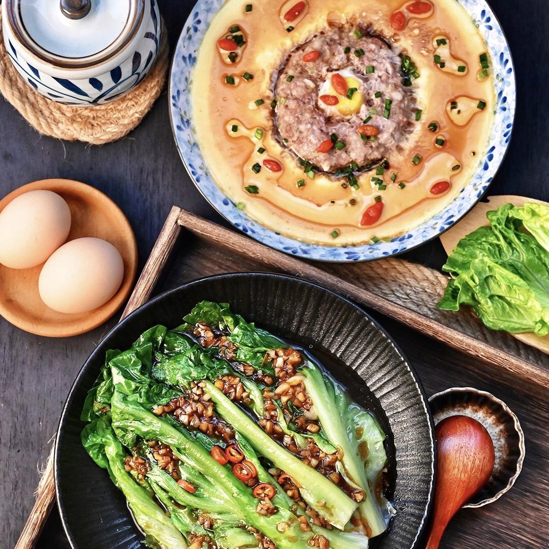 家常的味道|蚝油生菜&肉饼蒸蛋-湖南志明厨师学校