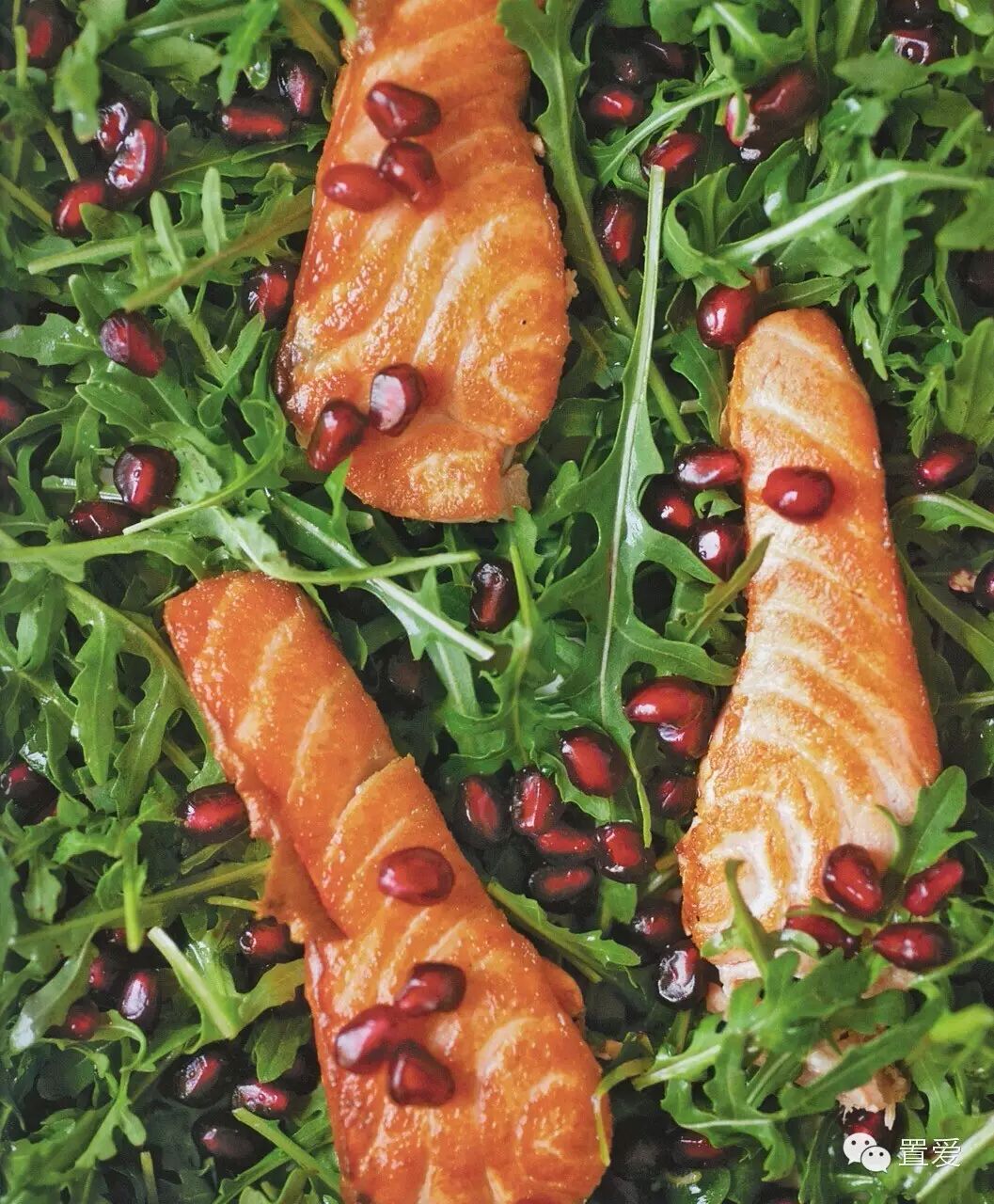 三文鱼和石榴拌芝麻菜 4 人份