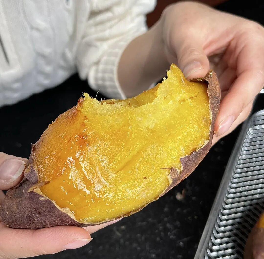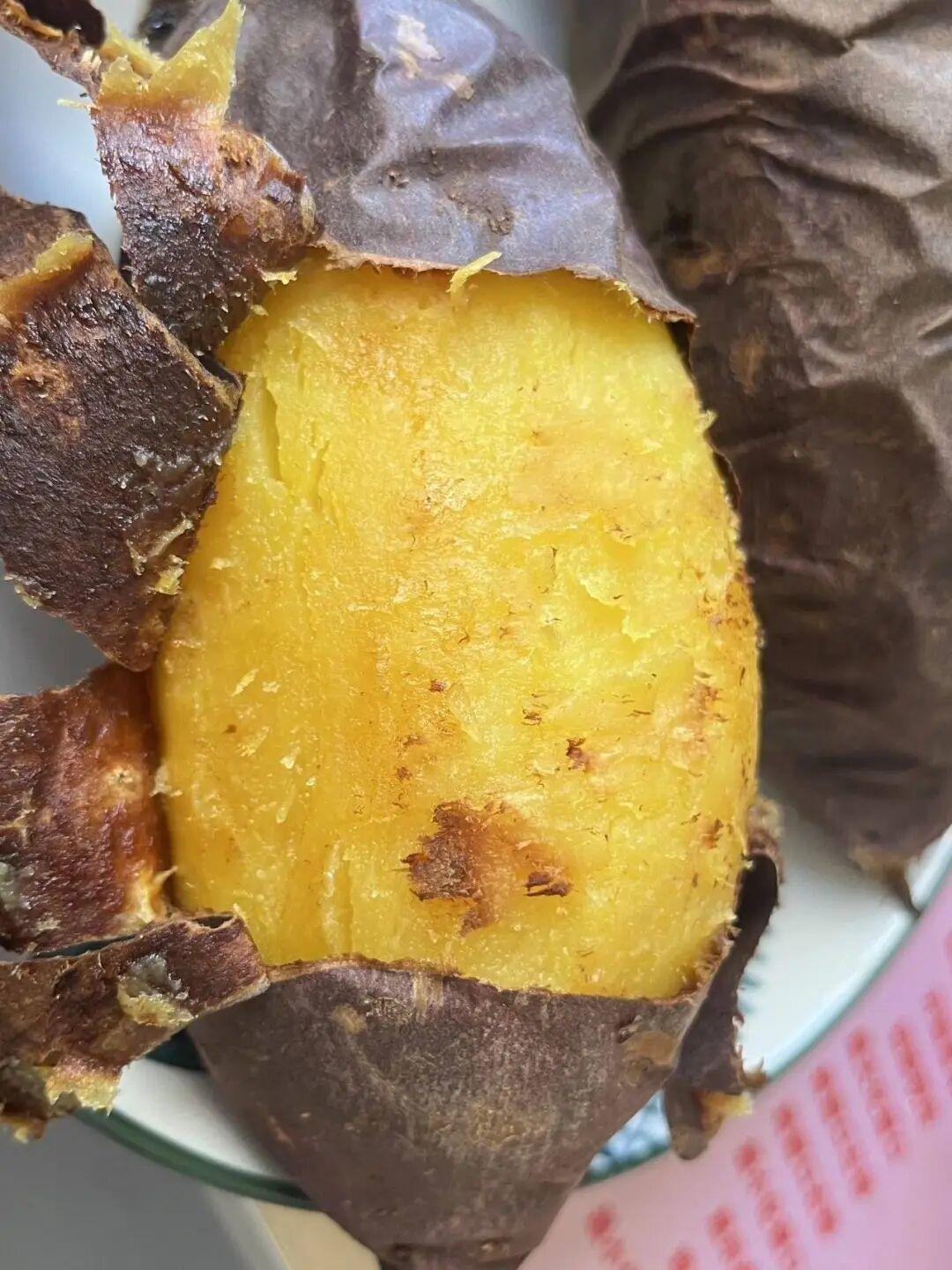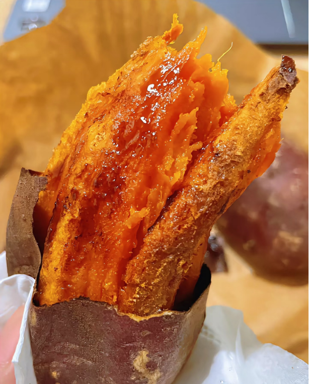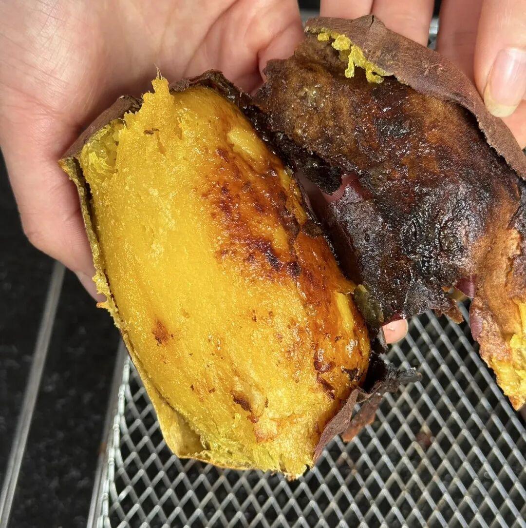 尤其是烤过之后,剥掉外皮,边缘的薯肉会变得微焦,带着脆香,中间的薯肉依旧软糯,一口下去,脆与糯的口感在嘴里碰撞,越嚼越有味。