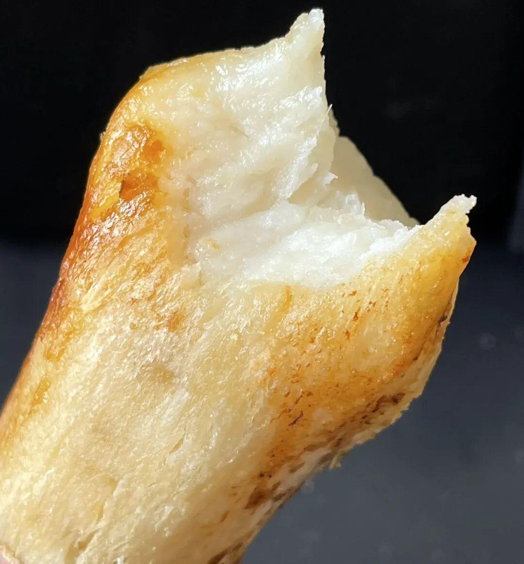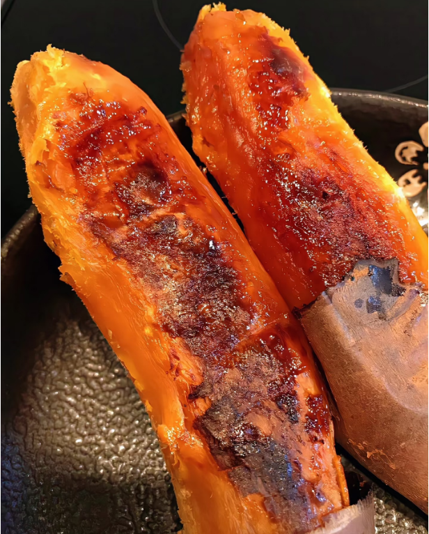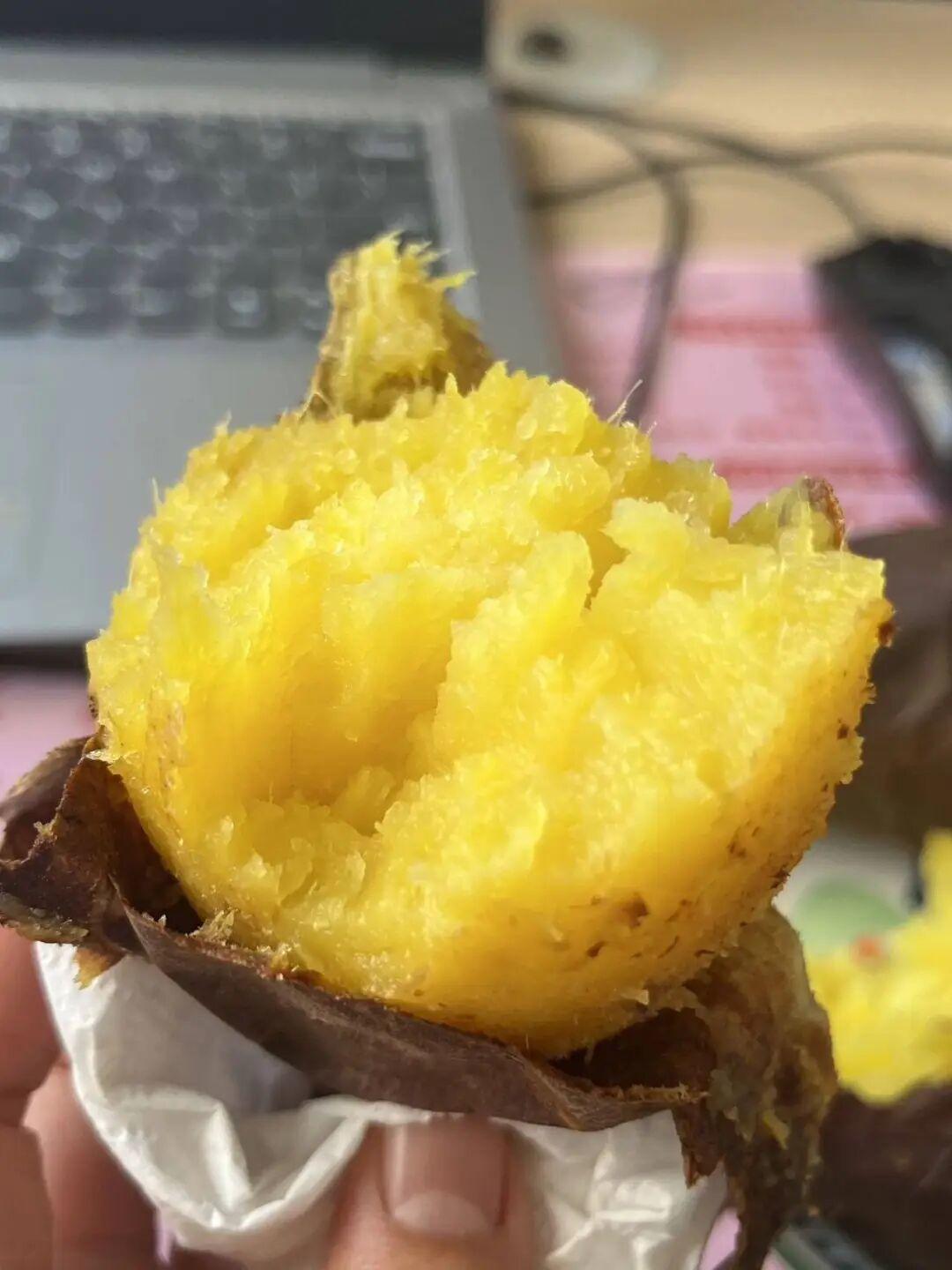 尤其是烤过之后,剥掉外皮,边缘的薯肉会变得微焦,带着脆香,中间的薯肉依旧软糯,一口下去,脆与糯的口感在嘴里碰撞,越嚼越有味。