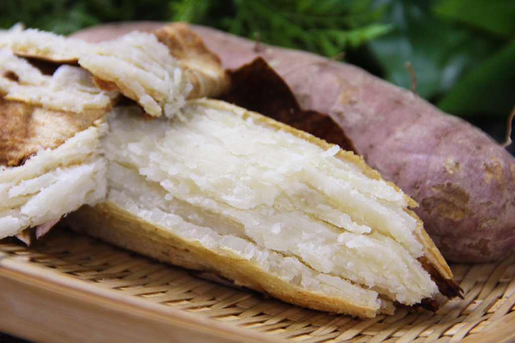 把它蒸烤之后,薯肉变得格外扎实,用筷子夹一块,能看到细腻的纹理里带着淡淡的蜜油,入口先是淡淡的薯香。