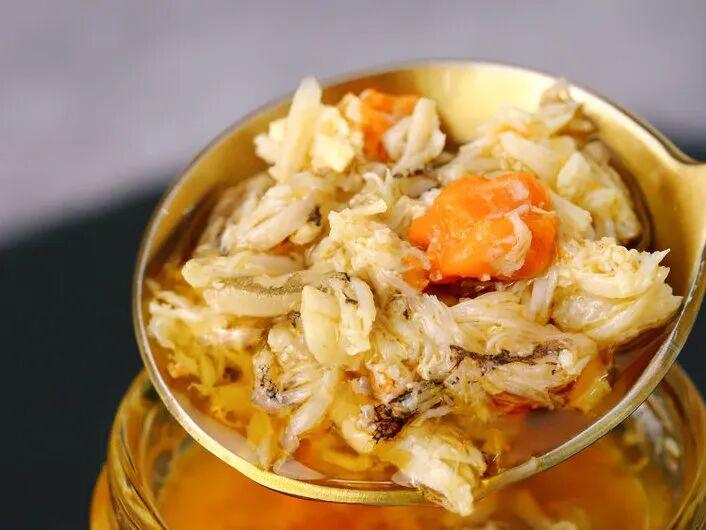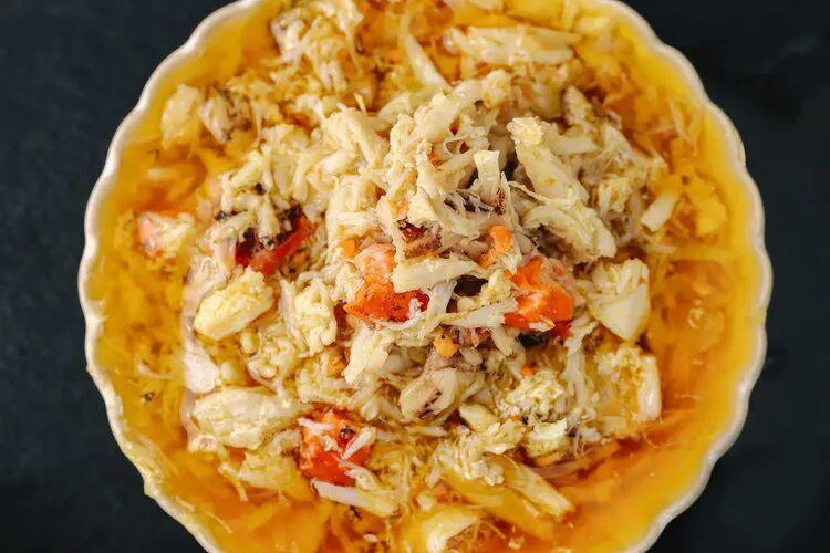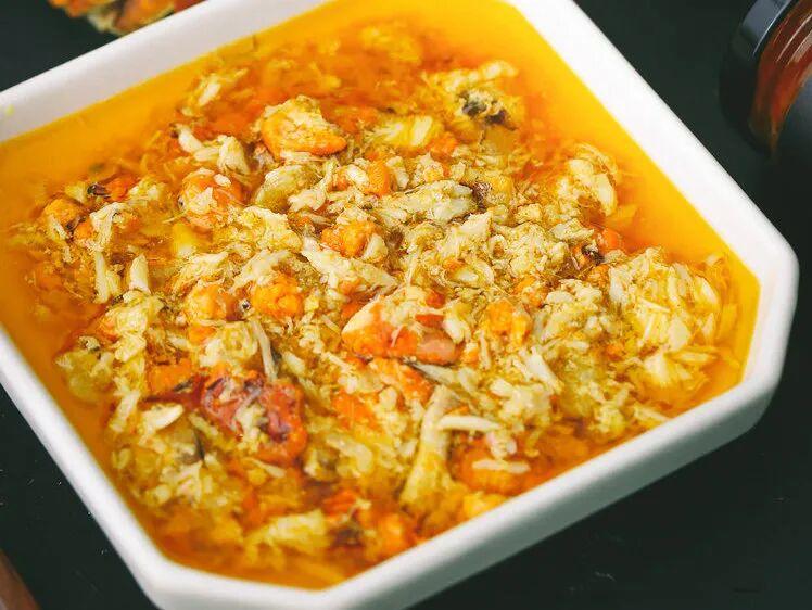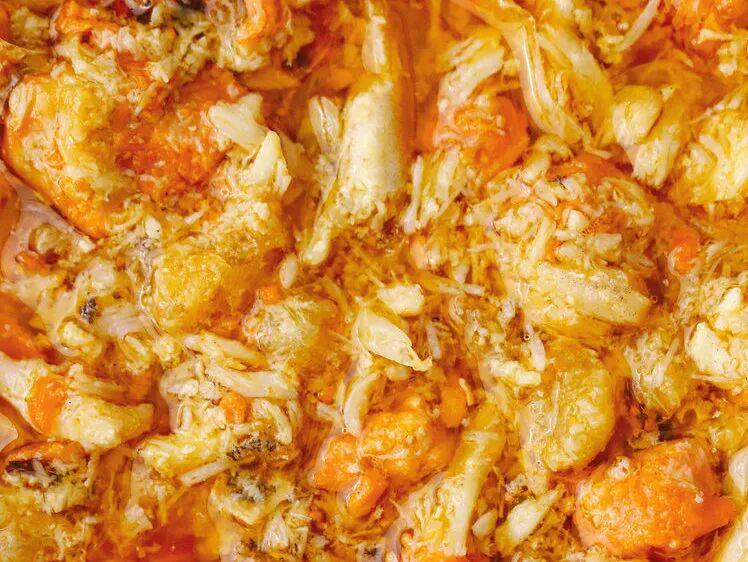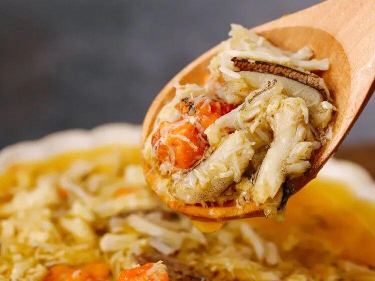 舀起来的每一勺,都能看到完整的蟹黄粒、晶莹的蟹膏、还有一丝丝的蟹肉。