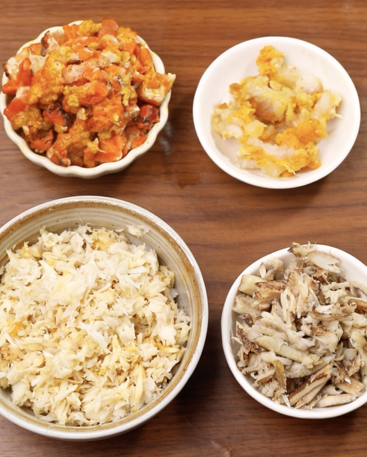 要小心地拆出完整的蟹黄,不能弄碎;要细细剔出每一丝蟹肉,不能浪费;还要把肥美的蟹膏完整保留。