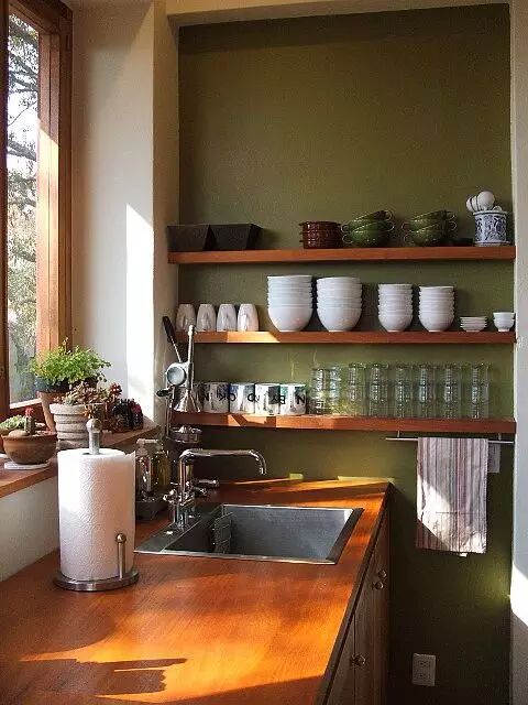 6 绿墙配木色,特别温暖的复古感。