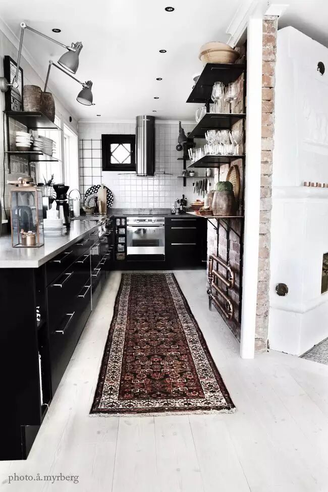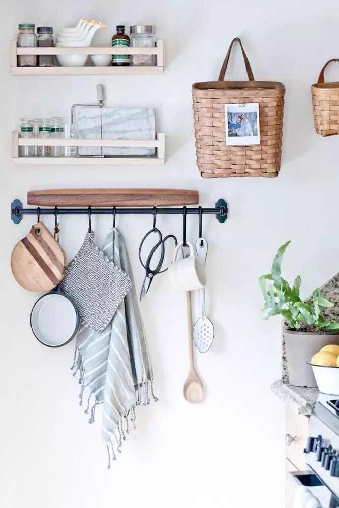 16 用一根超长挂杆横贯厨房。
