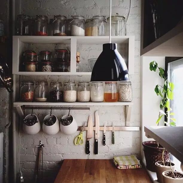 4 油烟不大的厨房,可以把厨房收纳做成展览。