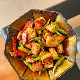 用了家里的做法 豆瓣酱炸香,放了小杭椒花椒干辣椒。