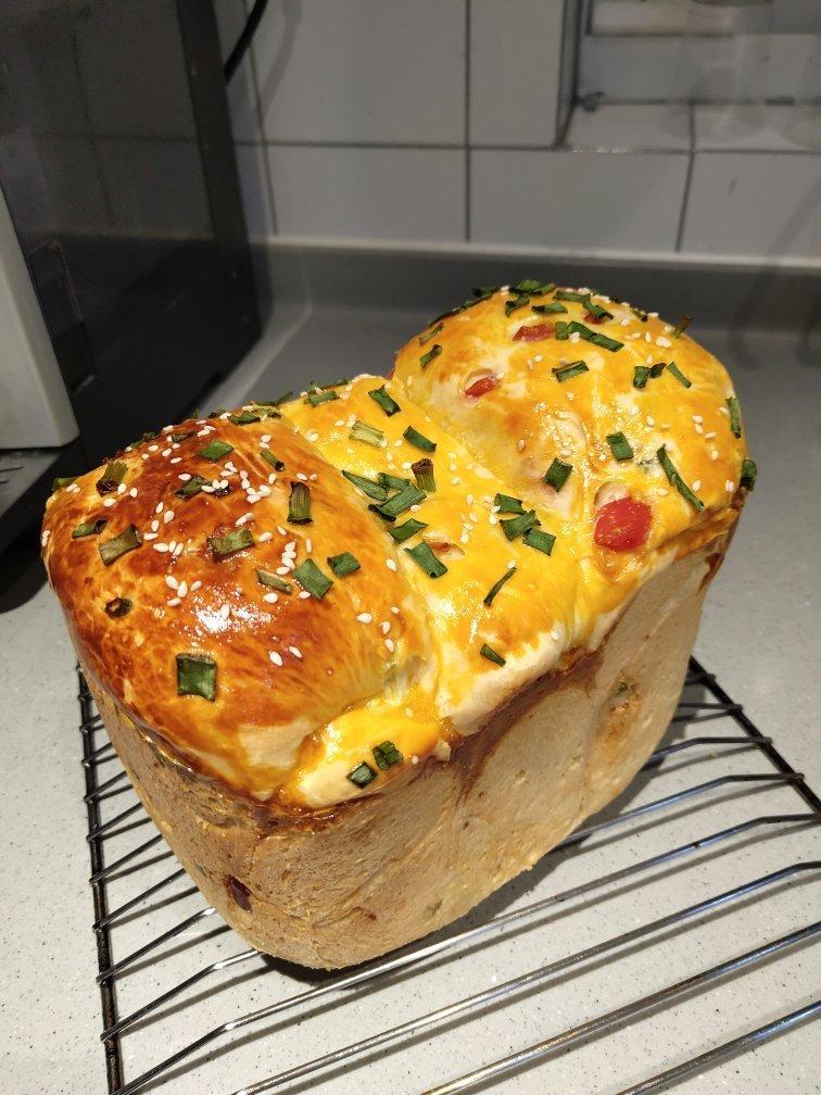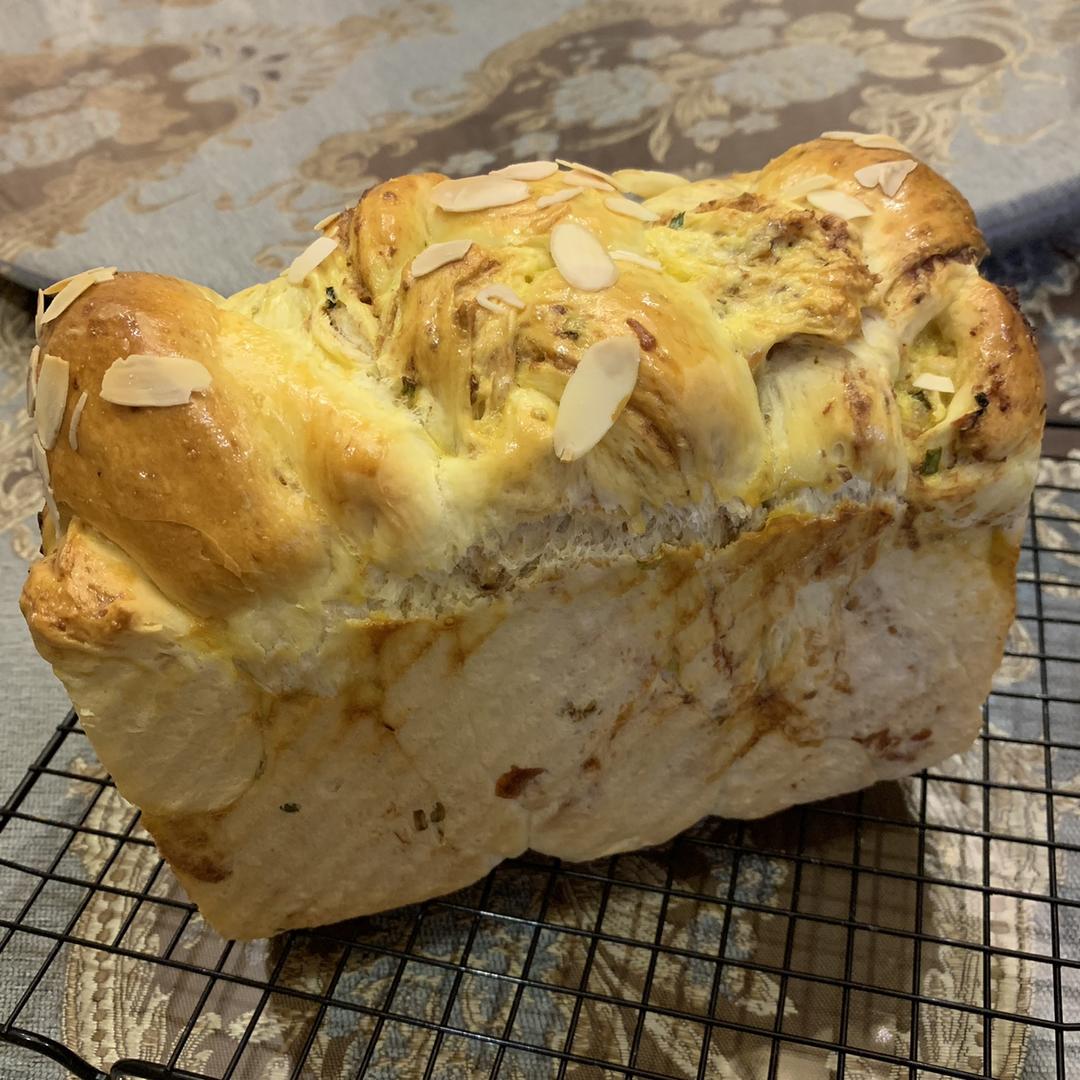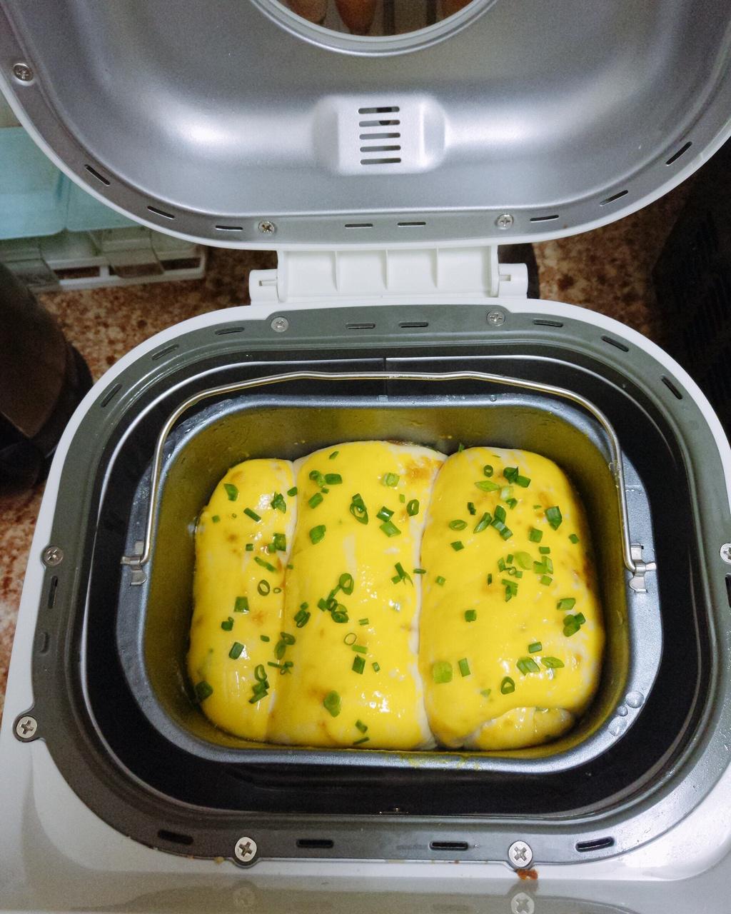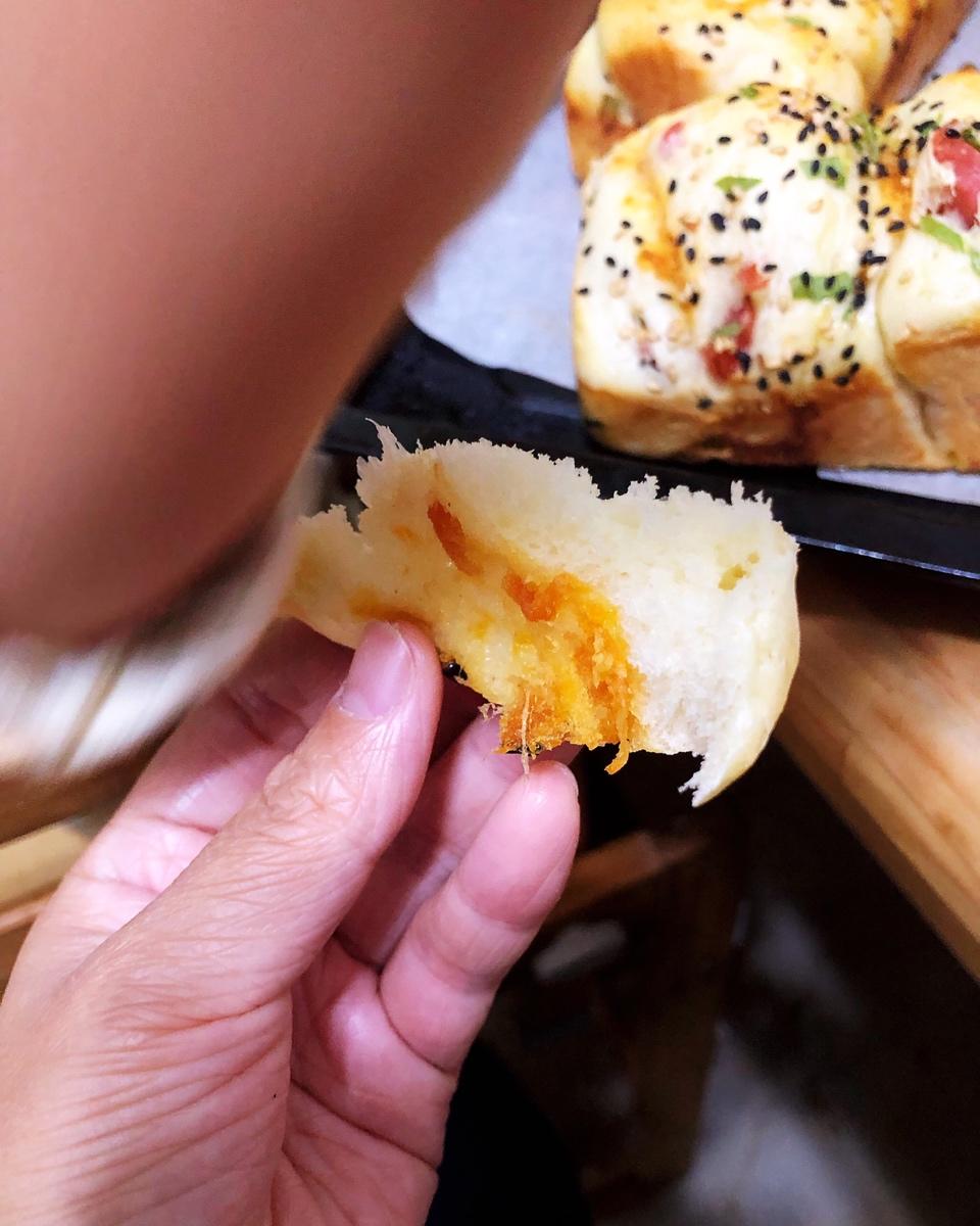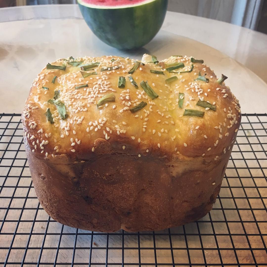 不知道为什么拿出来整形的时候特别黏,没办法就拿回去又揉了一遍,发酵完就烤了,加了葱比原味的好吃