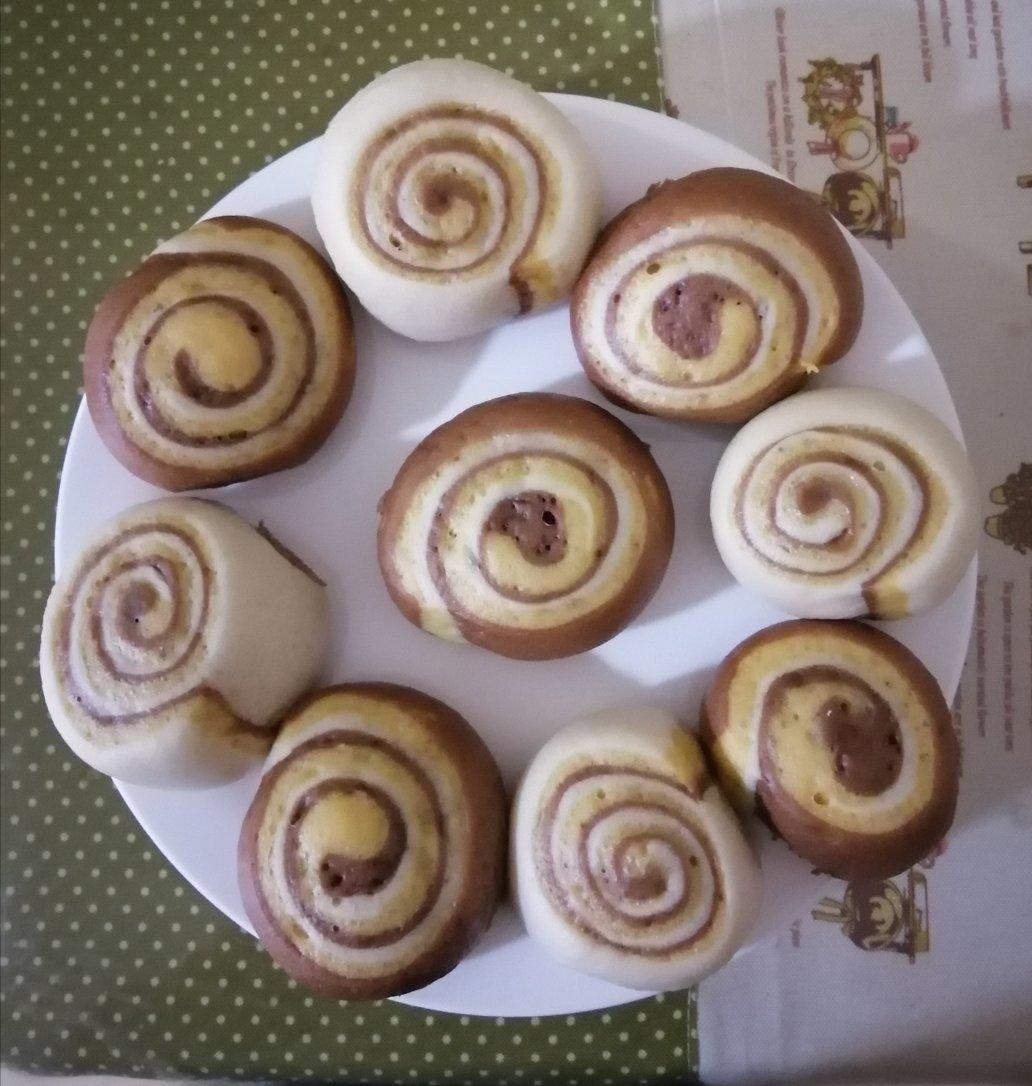 #早餐•2020年5月18日# 85%黑巧克力+红薯泥+白面做出的三色馒头。没加糖,原汁原味,营养健康。好吃!