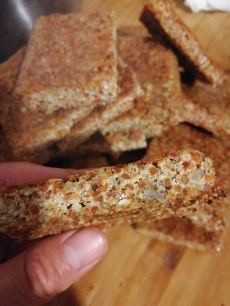 #早餐•2021年7月17日#昨天烤了这个胡萝卜坚果薄饼,不知为啥没能成型,可能是没有压得足够坚实吧。味道还是不错,每一口都有果仁的嚼劲和特别口感。
