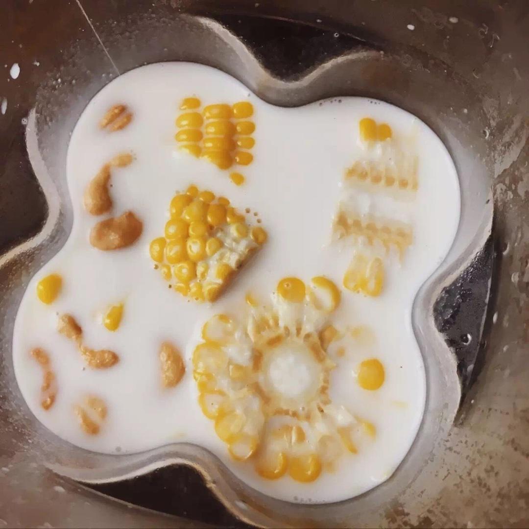 1.腰果可以用其他坚果代替 2.不喜欢甜味可以不加糖 玉米奶露的口感比较浓稠 也因此会让人比较容易有饱腹感 这样才能开启一个活力满满的早餐呀 玉米的味道很浓香 再加上奶香和腰果味儿 光是闻起来就让人胃口大开啦 其实早上起床以后把玉米和糯米下锅蒸煮 然后就去刷牙洗脸穿衣服 等做好所有的杂碎事,再把所有原料放到柳丁就好啦 还是蛮快手的一道早餐 好喝、营养又简单 明早试一试?