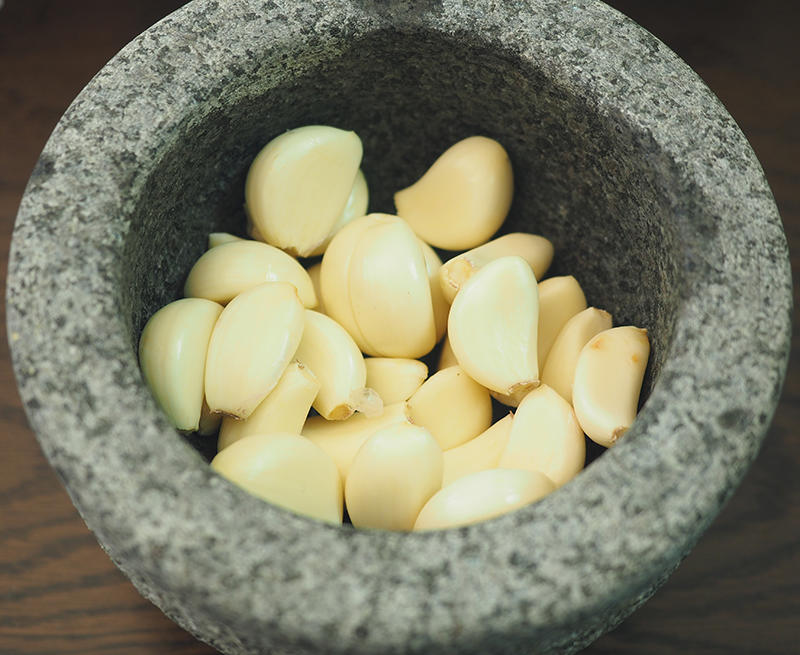 蒜去皮,切蒜蓉或者捣蒜器捣烂