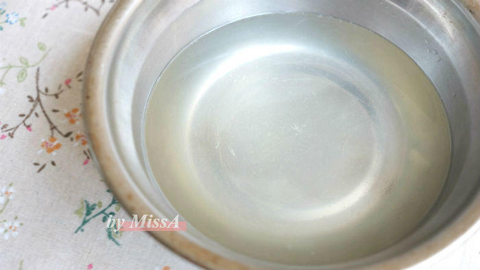 把水、柠檬汁和白酒倒进容器里,再加入吉利丁粉,以不会沸腾的温度微波加热,使其完全溶解;