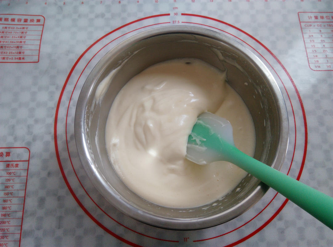 蛋黄糊搅拌好,放一边备用