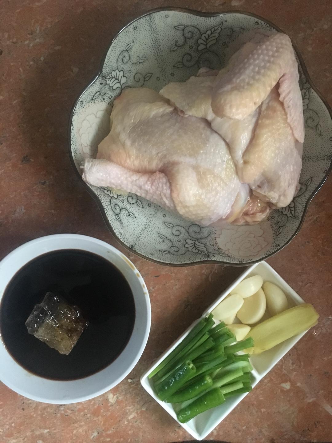 把鸡洗干净,沥水后切块;(个人建议不要把鸡皮去掉) 姜切片,蒜米保留整颗不切(因为切片或者切烂的话很容易糊,数量可以根据个人喜好增减,不可以不要); 葱切段,青辣椒切段(喜欢辣的可以把青辣椒换成小米辣)