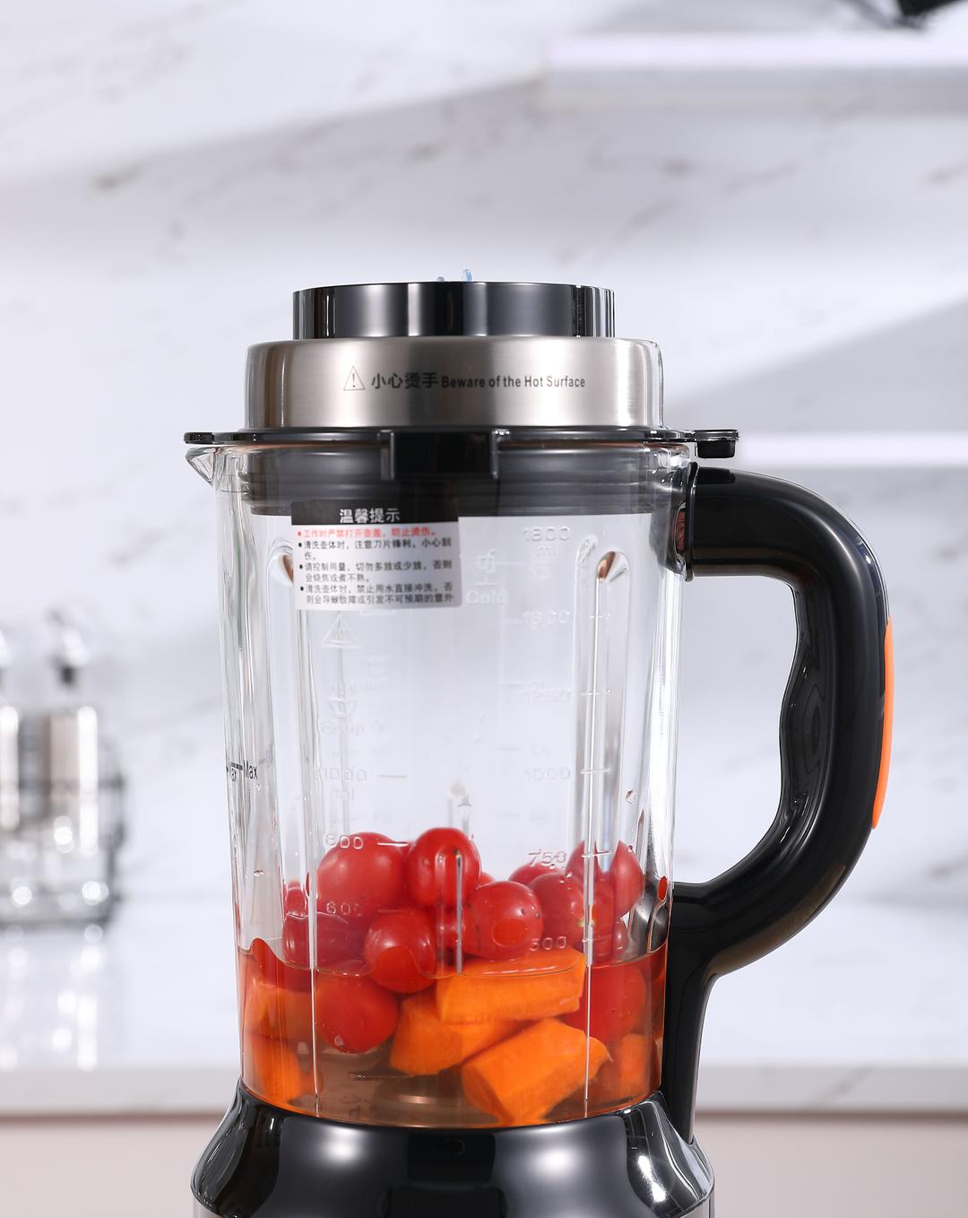 这款破壁机采用6.8寸触碰大屏,14大功能菜单,指尖轻触,一键破壁。