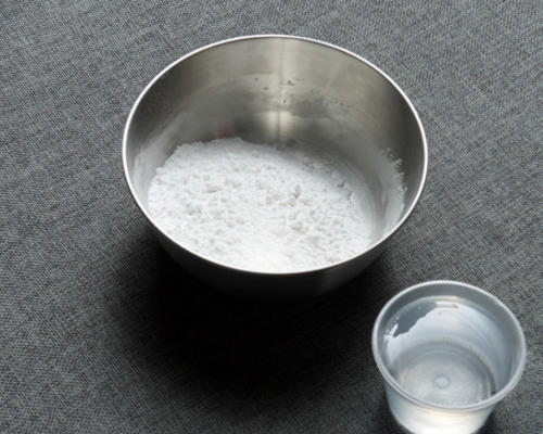 把粉和水混合在一起,搅拌均匀;
