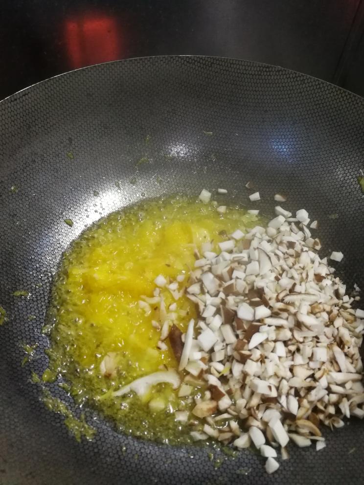橙子切成丁,香菇、辣椒、姜切碎。