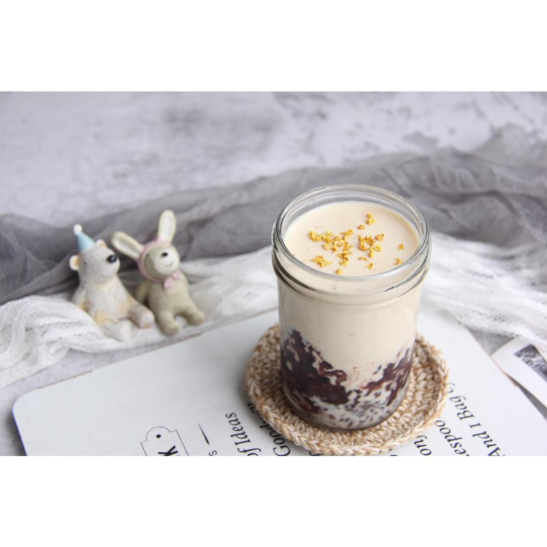 桂花是专属于秋天的味道,Q弹的燕麦和软糯的紫米搭配香醇的桂花奶茶,层次交叠的口感,融合桂花的清香,每一口都是绝妙的享受!#早餐•2018年11月15日##欢小厨日常料理##紫米燕麦桂花奶茶#