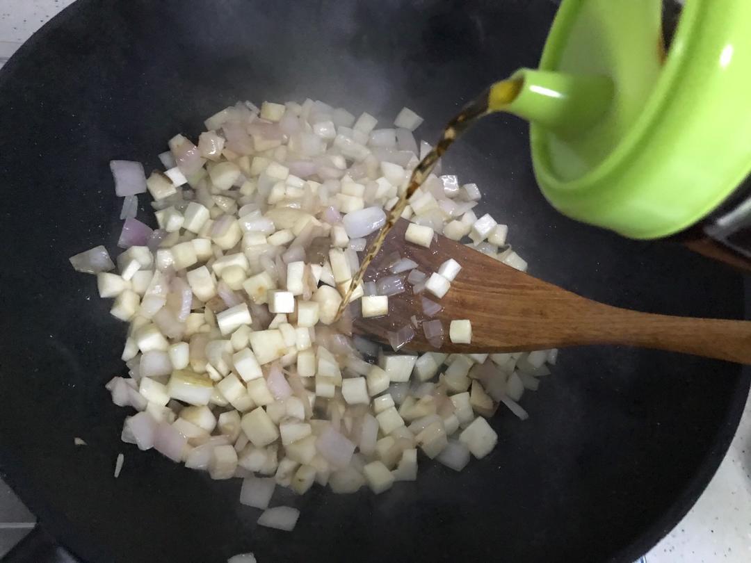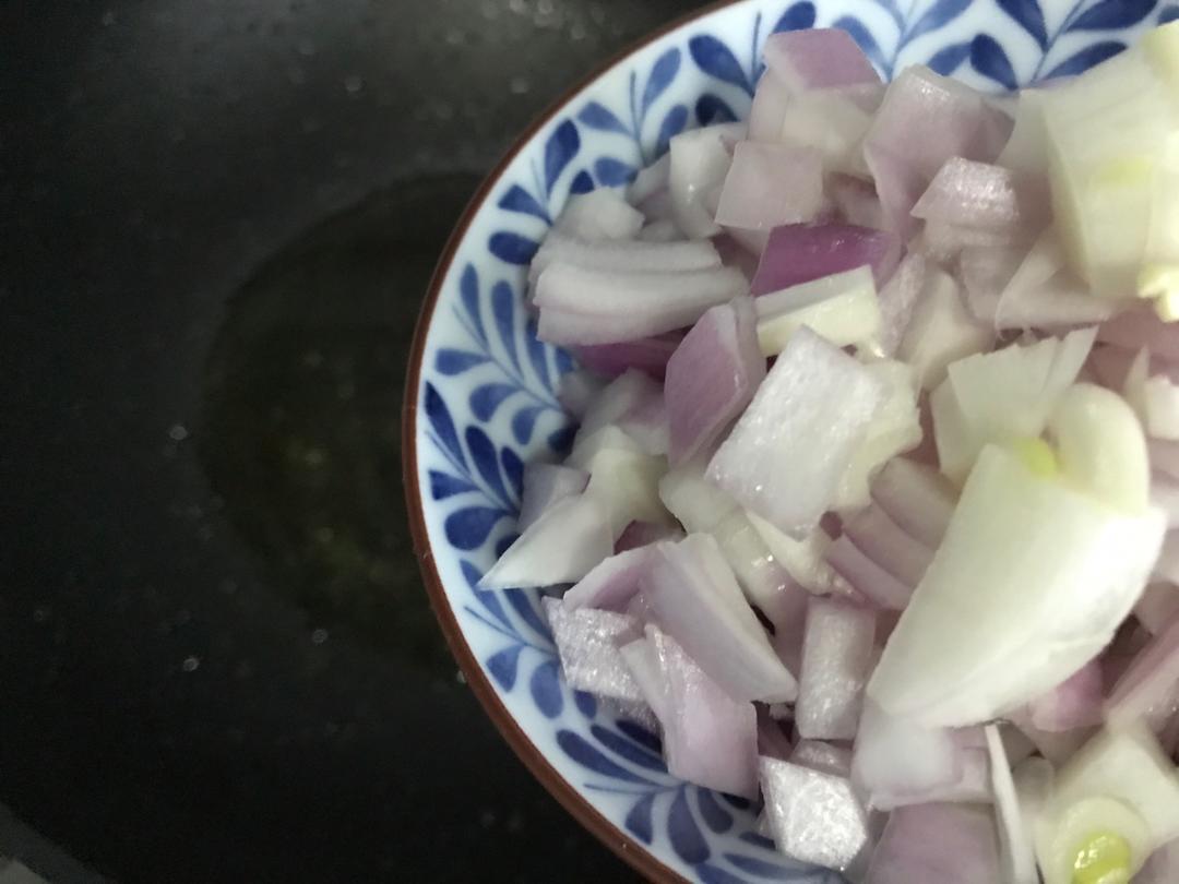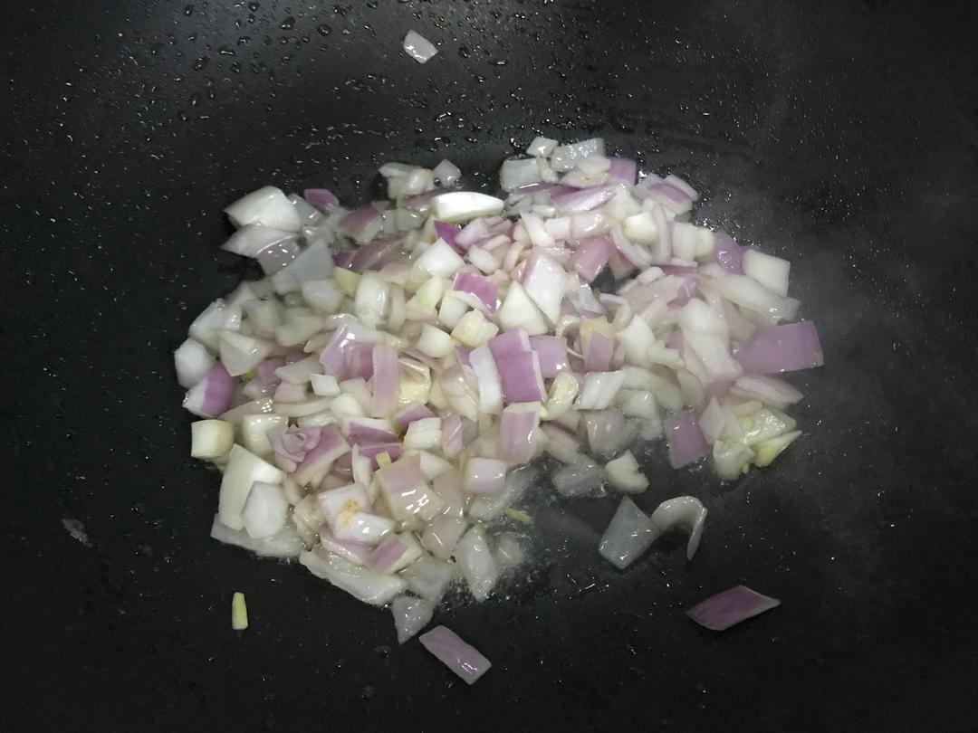 锅内添适量食用油,下洋葱