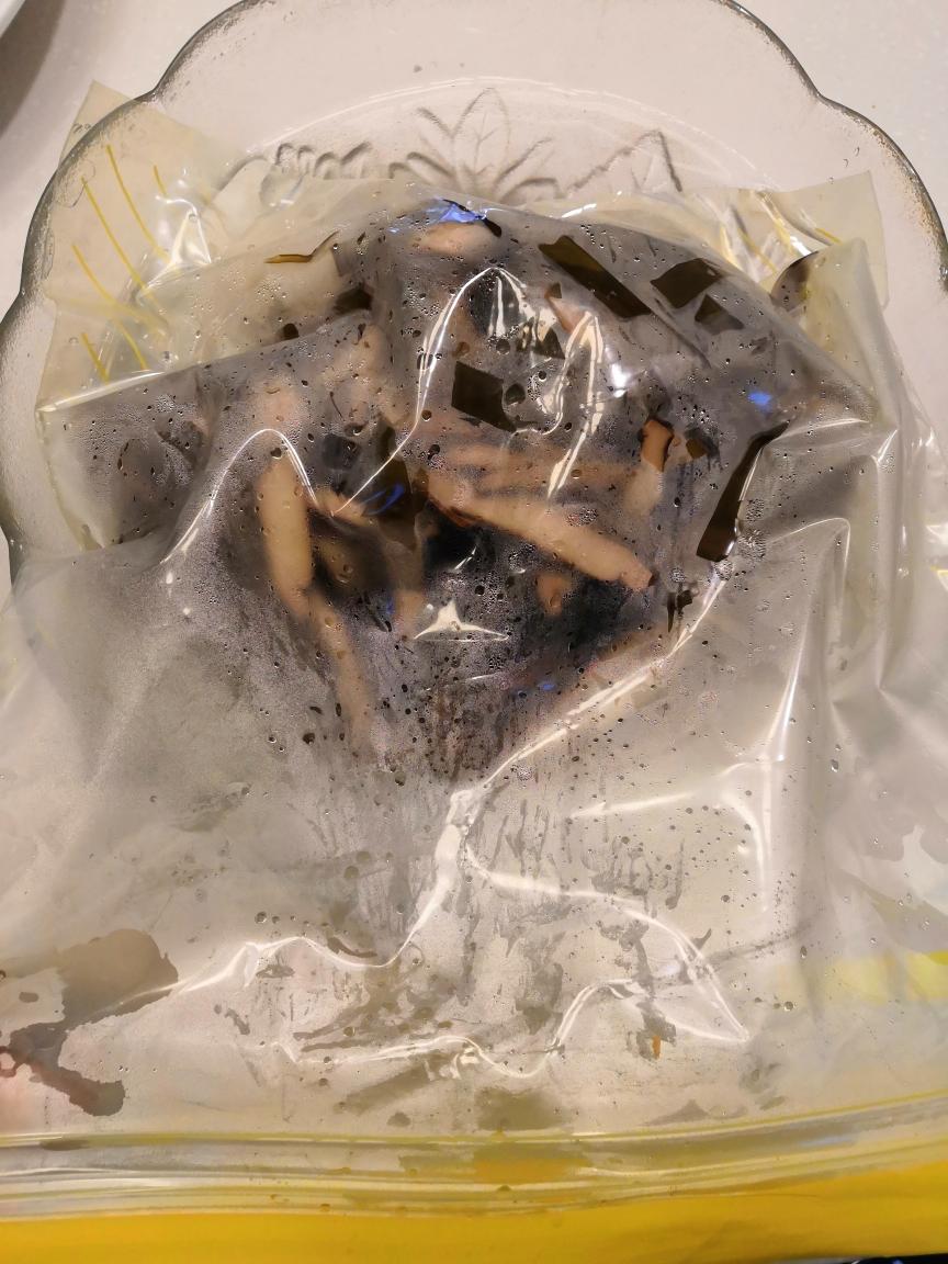 降温 将烫熟的食材捞出后放入夹链袋中,隔水降温。